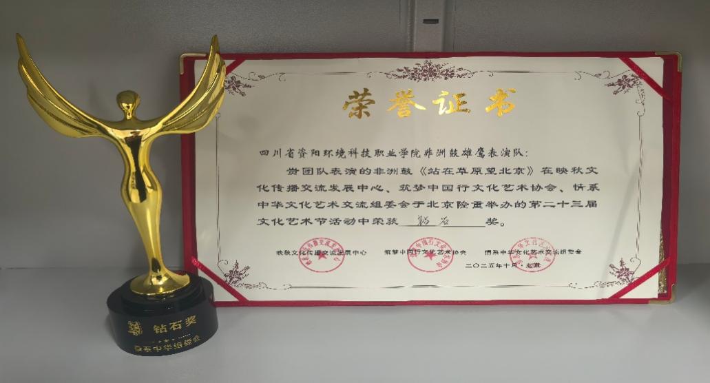 此前在情系中华文化艺术交流组委会等单位联合主办于北京CCTV录制基地开展的第二十三届文化艺术节活动中,凭借激情澎湃的鼓点、整齐划一的舞姿与真挚动人的家国情怀荣获大赛“钻石奖”!回溯备赛历程,老年大学的课堂里藏着太多 “匠心细节”。为契合 “中华文化艺术交流” 主题,王巧老师特意在原有编排基础上,融入了更多传统韵律元素 —— 将蒙古族长调的悠扬节奏与非洲鼓的热情节拍相融合,让鼓点既保留力量感,又暗含东方文化的细腻韵味;学员们则克服记忆与体力的双重挑战,每天提前一小时到课堂排练,却从没人喊过 “放弃”,“要去北京代表资阳参赛,咱们得拿出最好的状态!” 成为大家最常说的话。