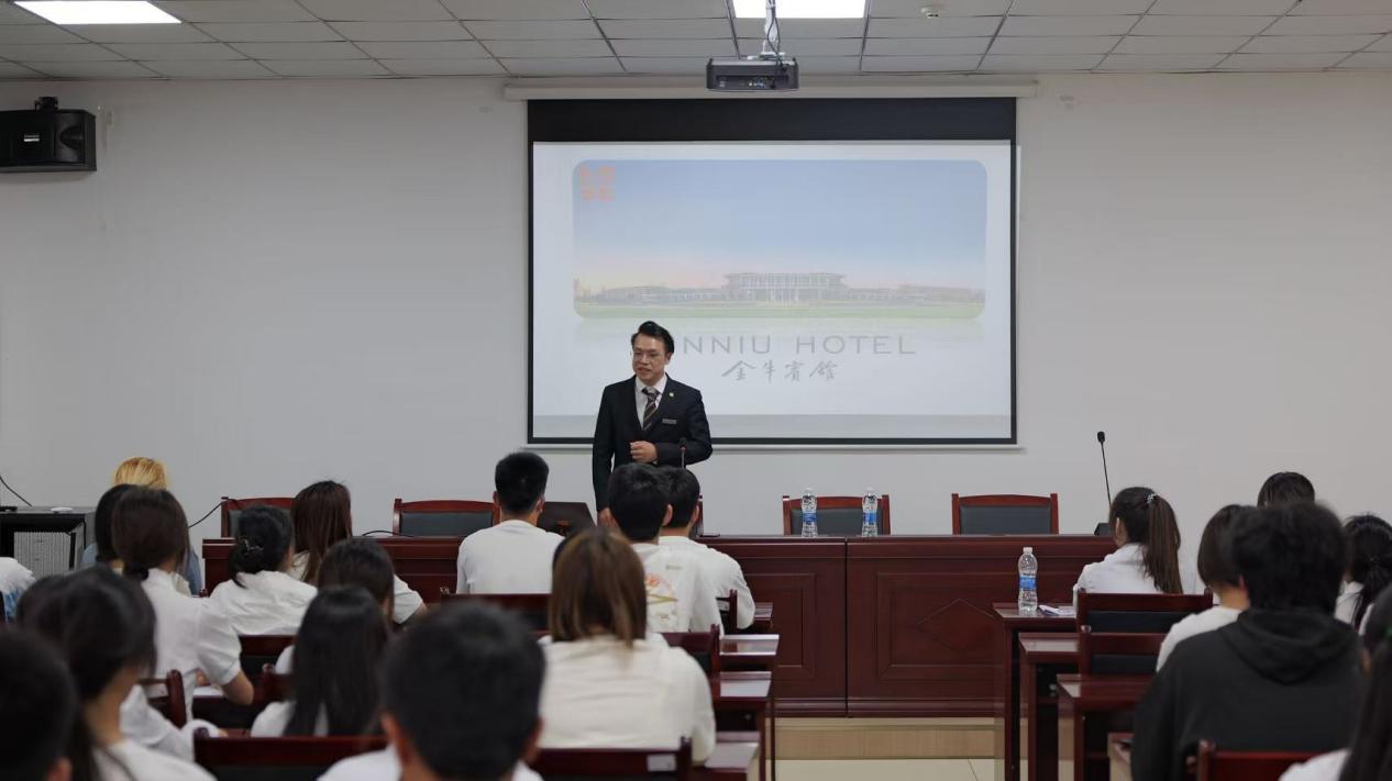 4月23日下午,成都金牛宾馆专场宣讲会在奥恒1楼培训室圆满举办,面向24级旅游管理专业学生定向开放优质实习岗位。学校对外合作与就业处李学洋处长致开场辞,对企业代表表示欢迎,并指出金牛宾馆作为省内行业标杆,是学生实践成长的优质平台。企业人力资源负责人详细解读企业概况、人才培养体系与“双路径”成长模式,清晰呈现从实习到转正的完整职业通道。现场同步开展简历投递与初试,学生有序参与、主动交流,获得企业代表高度认可。