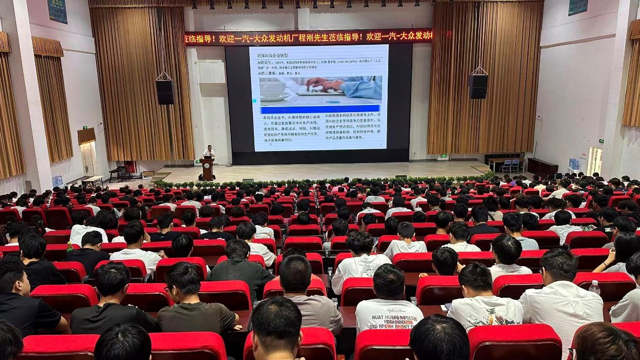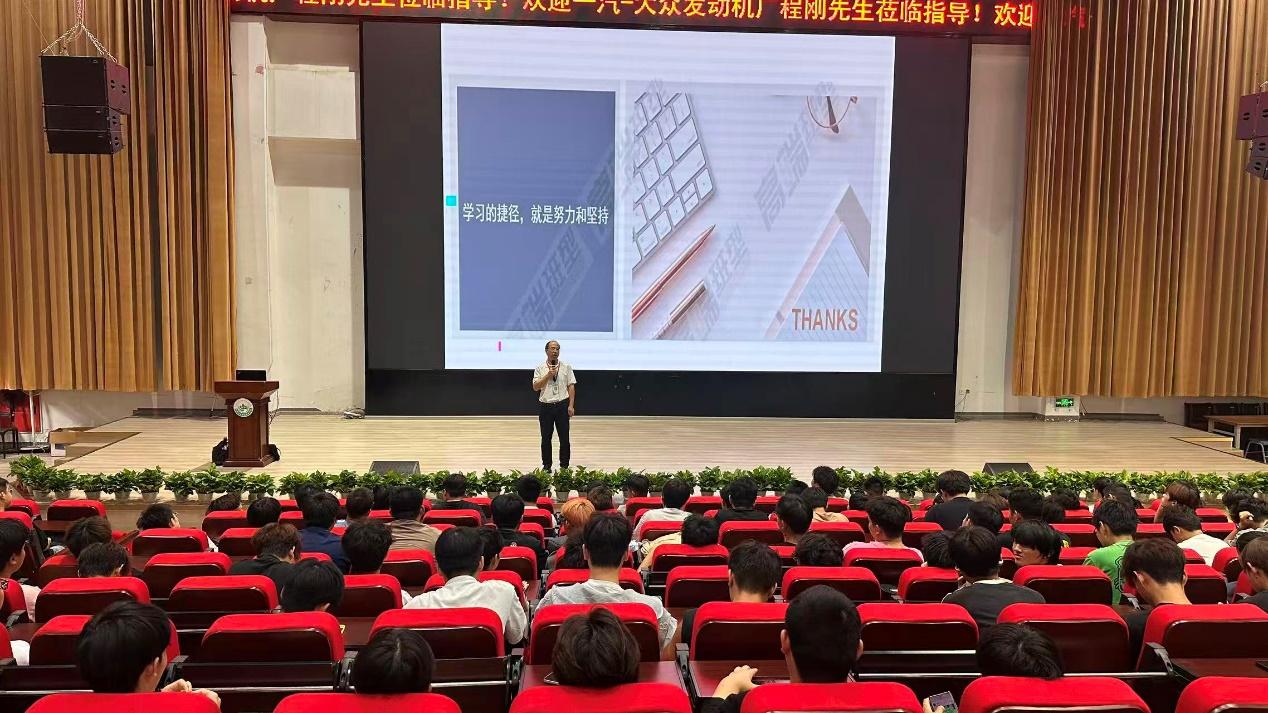 本次分享会特邀一汽-大众发动机厂总经理、高级经济师、物流高级工程师程刚担任主讲嘉宾,其丰富的企业实战经验与行业洞察为分享注入满满干货。分享过程中,程刚老师解读AI推动企业转型的价值,剖析供应链优化、生产监控、质量检测三大AI应用场景,以一汽-大众成都厂案例拆解AI落地细节,还从企业视角明确AI人才需求,为大一提供职业路径与求职建议。